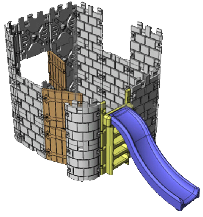 My Play Fort door and turret panels stack and interlock easily for compact storage.